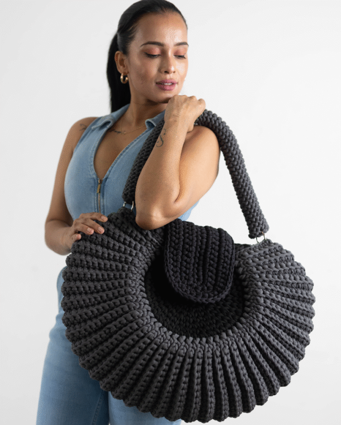 Handmade products should be handled with love and care. To preserve the beauty and longevity of your crochet bag, please read the following care guidelines carefully, along with the product descriptionCrochet Orio Bag XL -Dark Grey/Black