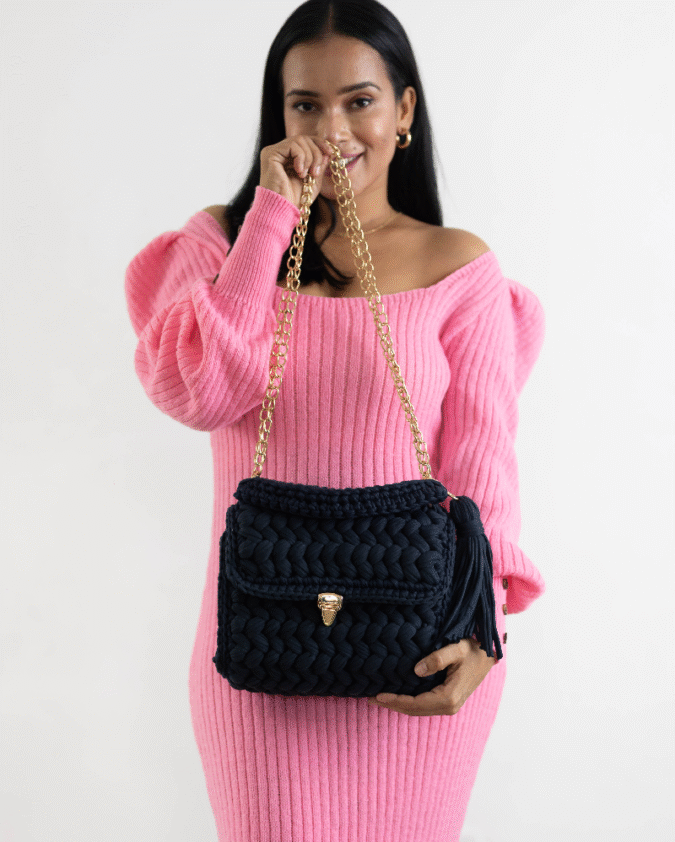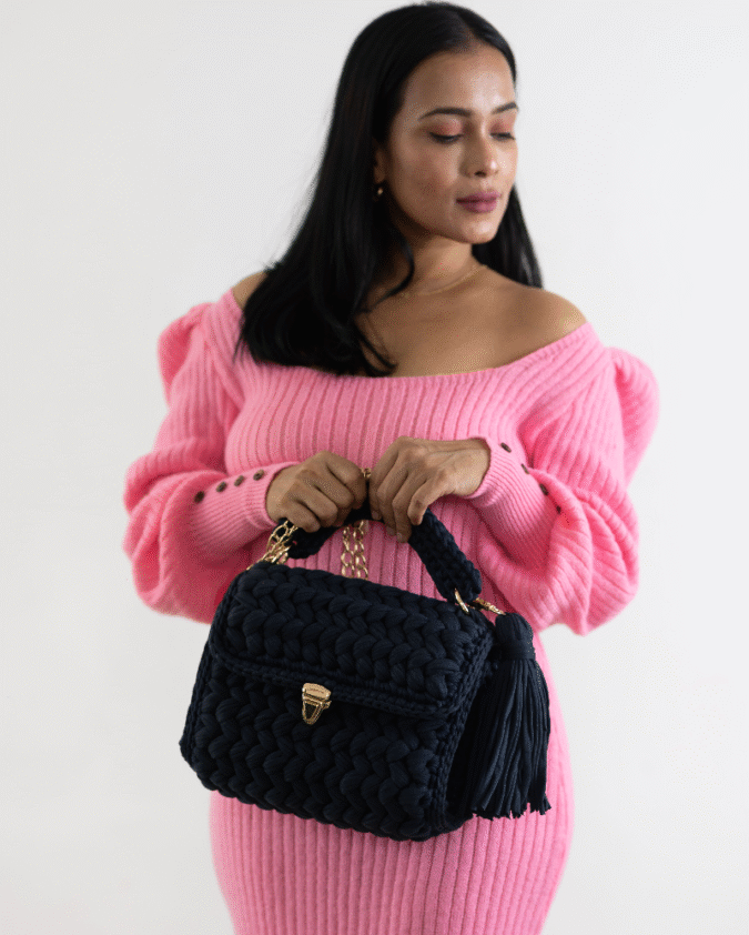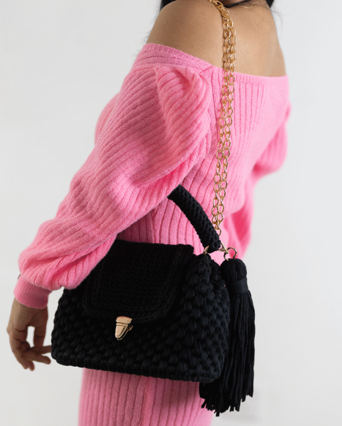 Handmade products should be handled with love and care. To preserve the beauty and longevity of your crochet bag, please read the following care guidelines carefully, along with the product descriptionBoho Twist Mini Crochet Bag- Black