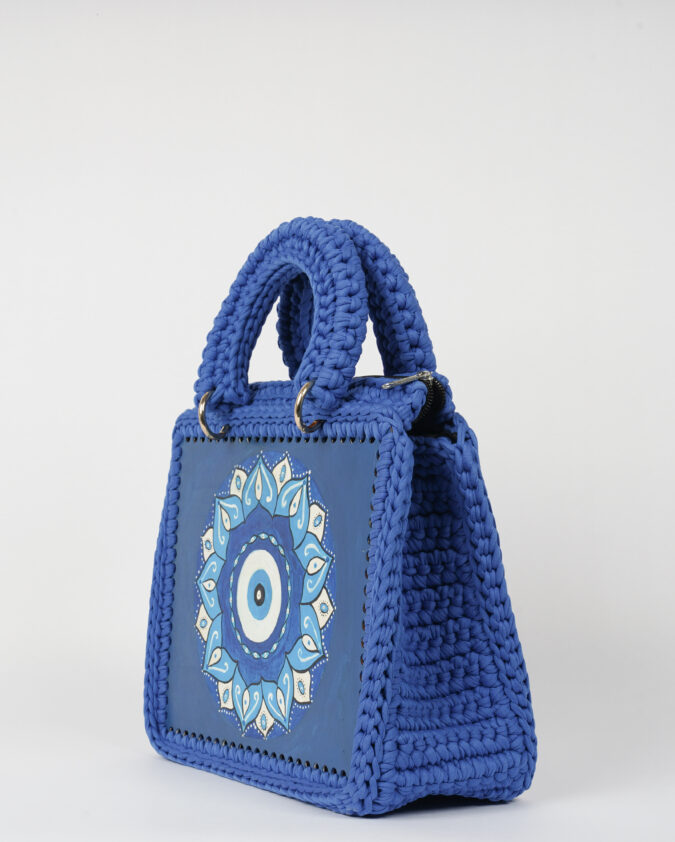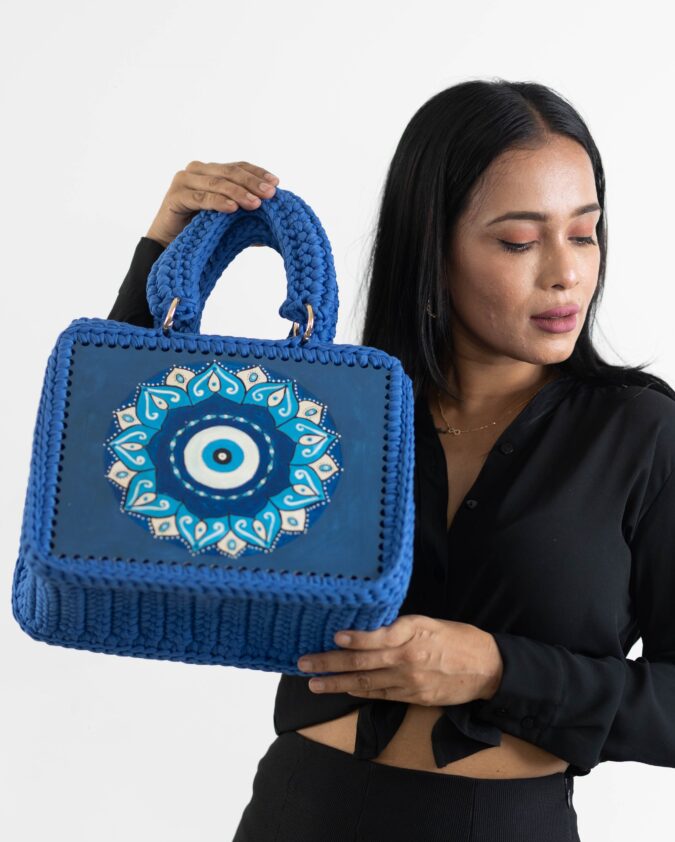 this vibrant crochet bag features a striking evil eye mandala design — a symbol of protection and positive energy. Lightweight, bold, and full of character, it’s the perfect statement piece for everyday charm.