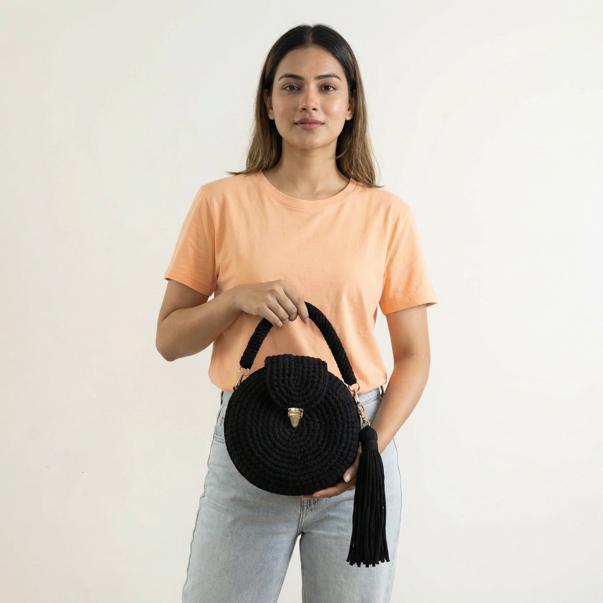 - Our crochet bags are not designed for heavy duty use. Please avoid overloading, as excessive weight may distort the shape or damage the wooden base
